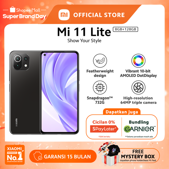 Xiaomi Mi 11 Lite (8GB+128GB) Qualcomm® Snapdragon™ 732G 64MP AI Kamera Layar 6,55" AMOLED FHD+ 4250