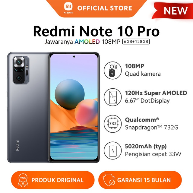 Xiaomi Redmi Note 10 Pro (6GB+128GB) AMOLED 6.67" 108MP Quad Kamera Snapdragon 732G Baterai 5020mAh