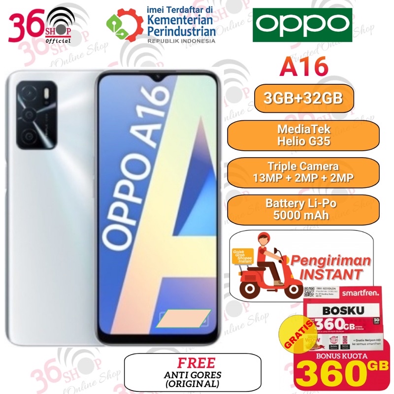 Oppo A16 [3GB+32GB] [4GB+64GB] Garansi Resmi Oppo 1 Tahun