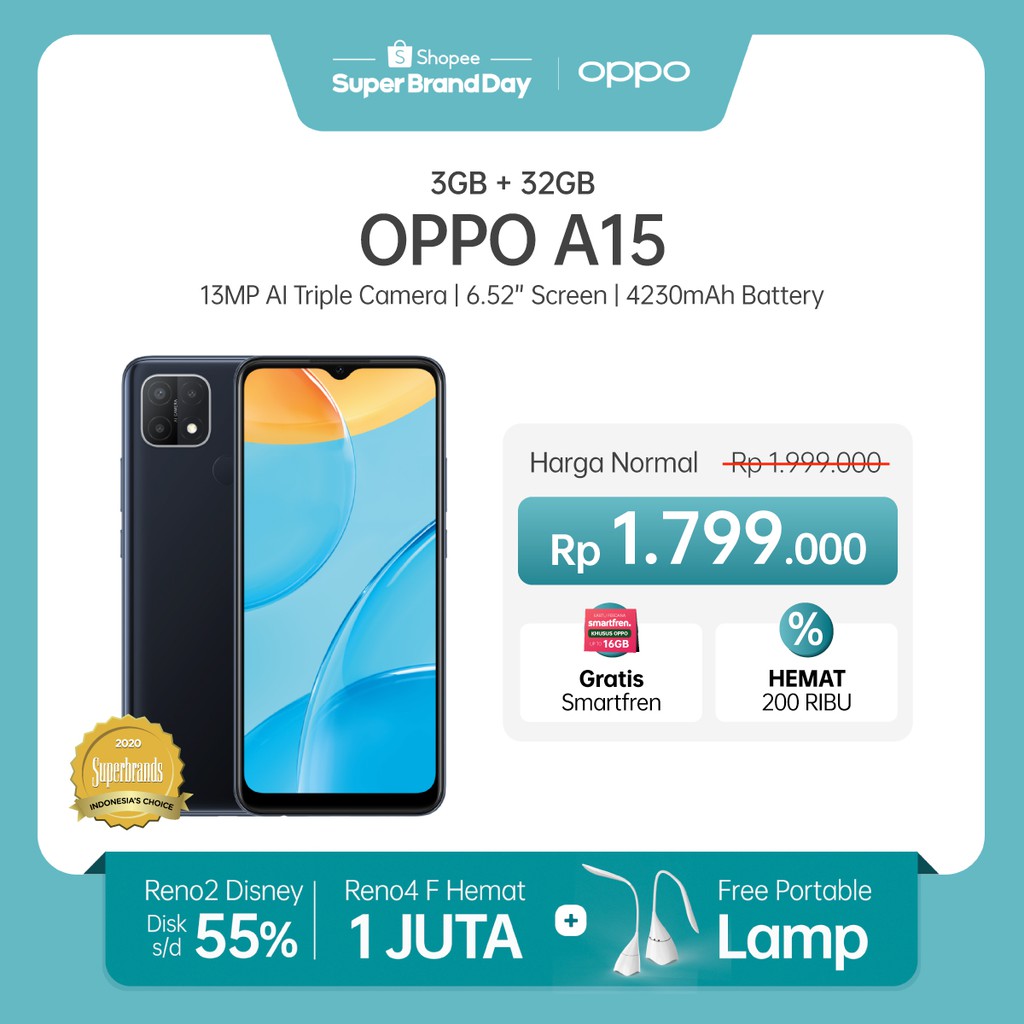 Produk OPPO A15 3GB/32GB [4230 mAh, 13 MP, Fingerprint, Triple Camera] ini harganya adalah Rp. 1.799.000,00 dan saat ini sedang Diskon 10%. Produk ini pada saat saya tulis Artikel ini sudah dilihat sebanyak 225734 kali dan sudah disukai sebanyak 18783 kali.