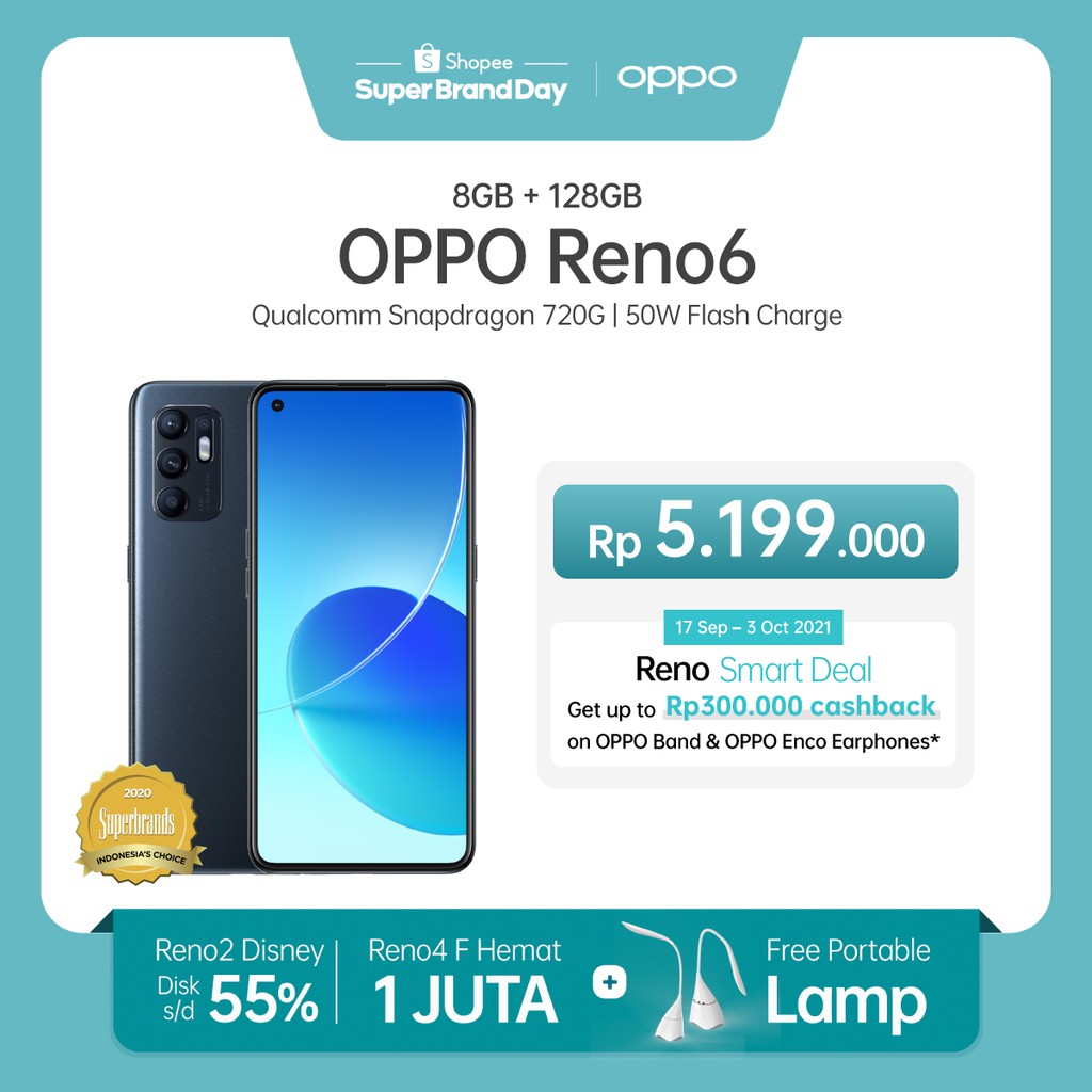 Kelebihan Membeli OPPO Reno6 8/128GB [64MP AI Quad Camera, 50W Flash Charge, OPPO Reno Glow] di Toko ini :