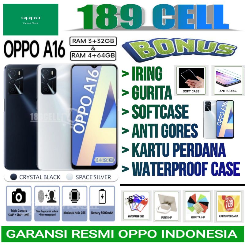 OPPO A16 RAM 3/32 GB | A16 4/64 GB GARANSI RESMI OPPO INDONESIA