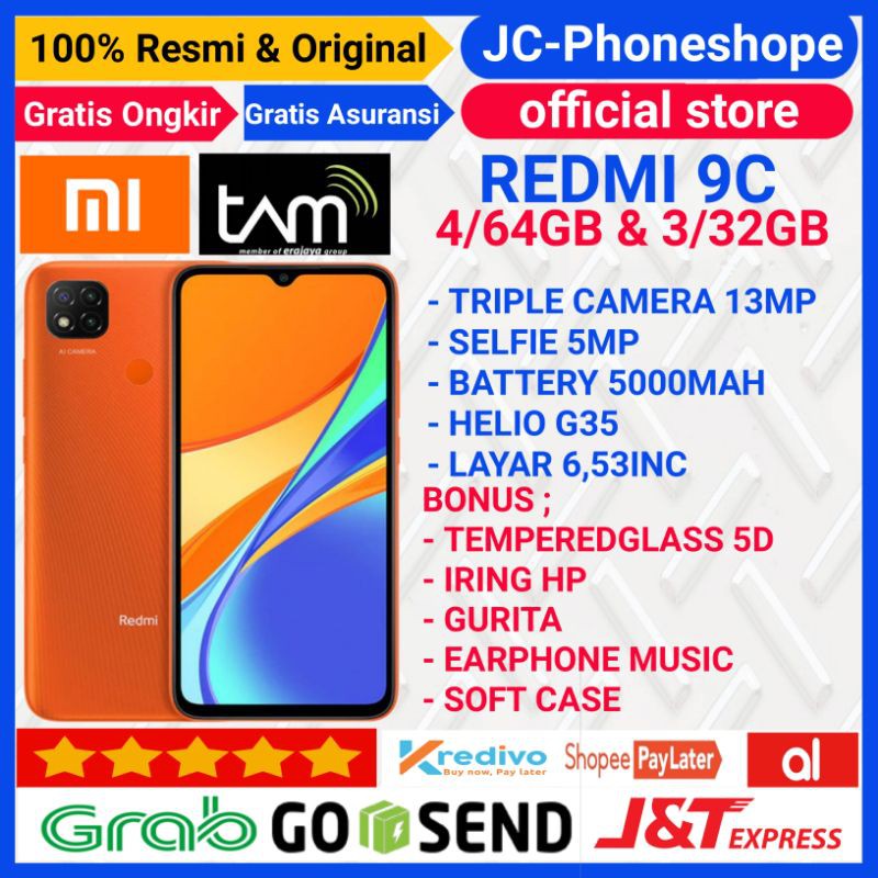 XIAOMI REDMI 9C RAM 4GB 64GB GARANSI RESMI TAM XIAOMI INDONESIA - BONUS